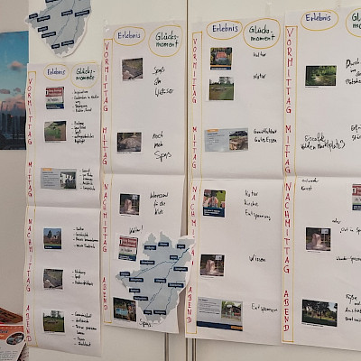 Ein besonderer Programmpunkt war der ILE Bina-Vils Workshop „Glücksorte in der Bina-Vils Region". Gemeinsam erkundeten wir die Schönheiten unserer Heimat. Anschließend erhielten die Teilnehmer die Möglichkeit, auf Basis von "Erlebnisbausteinen" ihren eigenen individuellen Erlebnistag zu gestalten. Die Teilnehmer entdeckten dabei, dass Glücksgefühle, Freude, Spaß, Spannendes, Informatives, Erholung, Sport, Genuss und Erlebnisse oft näher liegen, als wir denken.